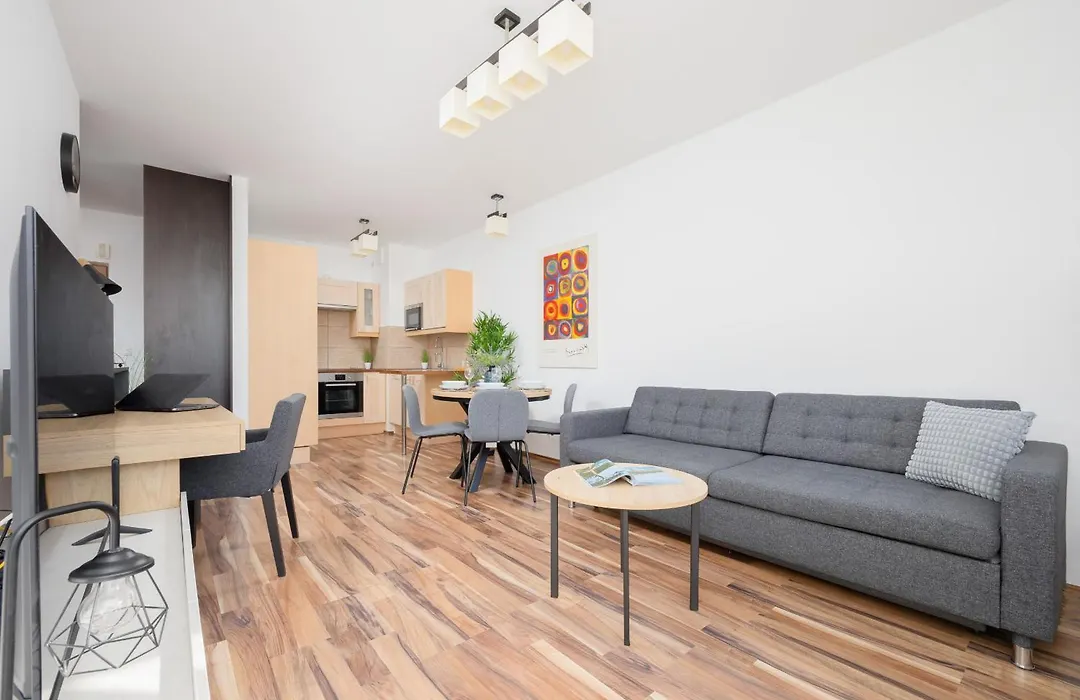 Spacious Apartment With Parking And Balcony By Noclegi Renters has a kitchenette, which comes complete with an oven and a dishwasher. The nearest bus stop to Spacious Apartment With Parking And Balcony By Noclegi Renters is Szancera 01, which is about a 10-minute walk away.